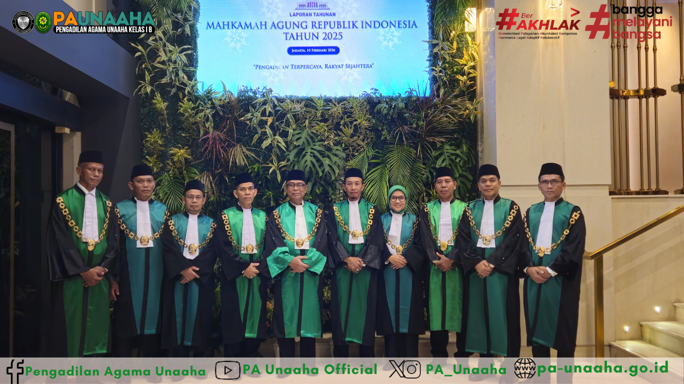 Unaaha — Wakil Ketua Pengadilan Agama Unaaha, Kaharudin Anwar, S.H.I., M.H., menghadiri Sidang Istimewa Penyampaian Laporan Tahunan Mahkamah Agung Republik Indonesia Tahun 2025 yang digelar di Gedung Mahkamah Agung RI, Jakarta, Rabu (10/2/2026).